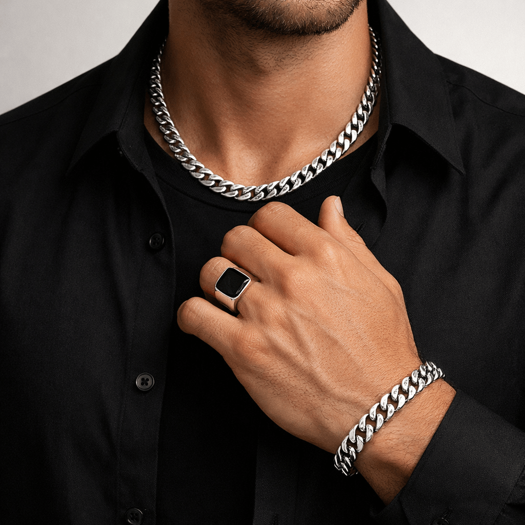 Explore our exclusive men’s jewelry collection featuring bold rings, stylish chains, and elegant bracelets. Crafted with precision and luxury aesthetics to complement the modern gentleman’s personality.